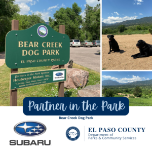 Bear Creek Dog Park is El Paso County’s most visited park site with more than 100,000 visitors a year. The 25-acre off-leash dog park is located in Bear Creek Regional Park.